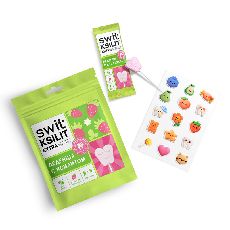 Леденцы на палочке Swit by Revyline Ksilit Extra Клубника, 8 шт.