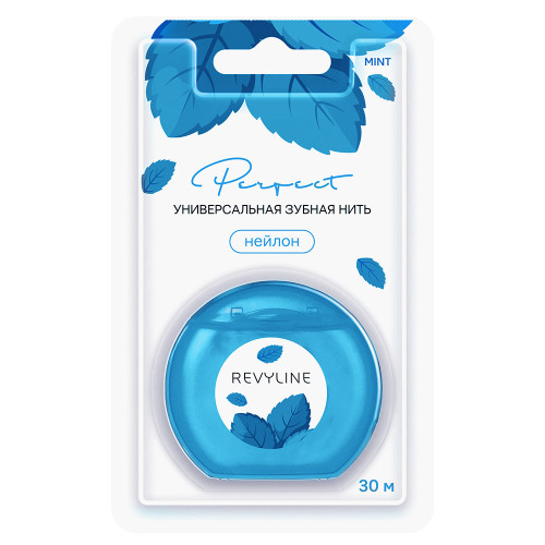 Зубная нить Revyline нейлон, мятная, вощеная с хлоргексидином, 30 м